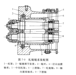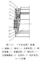 ⑧自 20世(shì)紀(jì)80 年代以來,采用了專門(mén)設計(jì)的被稱(chēng)為"卡菲克斯"的新型輥環緊固裝(zhuāng)置,如圖(tú) 7-10 所示。它與標準的輥環緊固裝置相比較,使碳化(huà)鎢輥(gǔn)環軋槽壽命從4 000t/mm 直徑提高到(dào)9000~11000t/mm 直徑,軋輥輥環更換的時間間隙大大增加了。