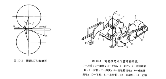 圖(tú) 10-4所示為某廠小型車間簡易(yì)滾筒式飛剪結構示意。它安(ān)裝於φ320機列與9250機列(liè)之(zhī)間的輸送輥道上,用來對運動著的軋件進行(háng)切頭或切除有缺陷的部分。