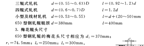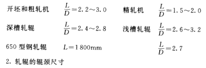 輥徑(jìng)直徑(jìng)d和(hé)長度l與軋輥(gǔn)軸承形式及工作(zuò)載荷有關,由(yóu)於受軋輥軸承徑向尺寸的限製,一般按經驗數據選取
