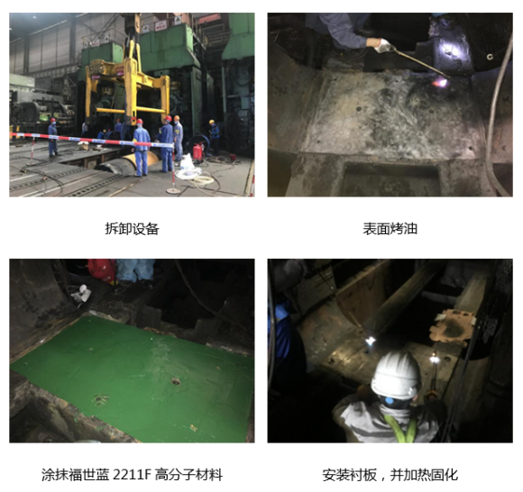 福世藍(lán)高(gāo)分(fèn)子複合材料(liào)應用於軋機底板等部件上修複,較大的優點就是能現場修複(fù),精(jīng)度高效果好,除(chú)此之外,該模式還(hái)具有以下幾個優點(diǎn):
